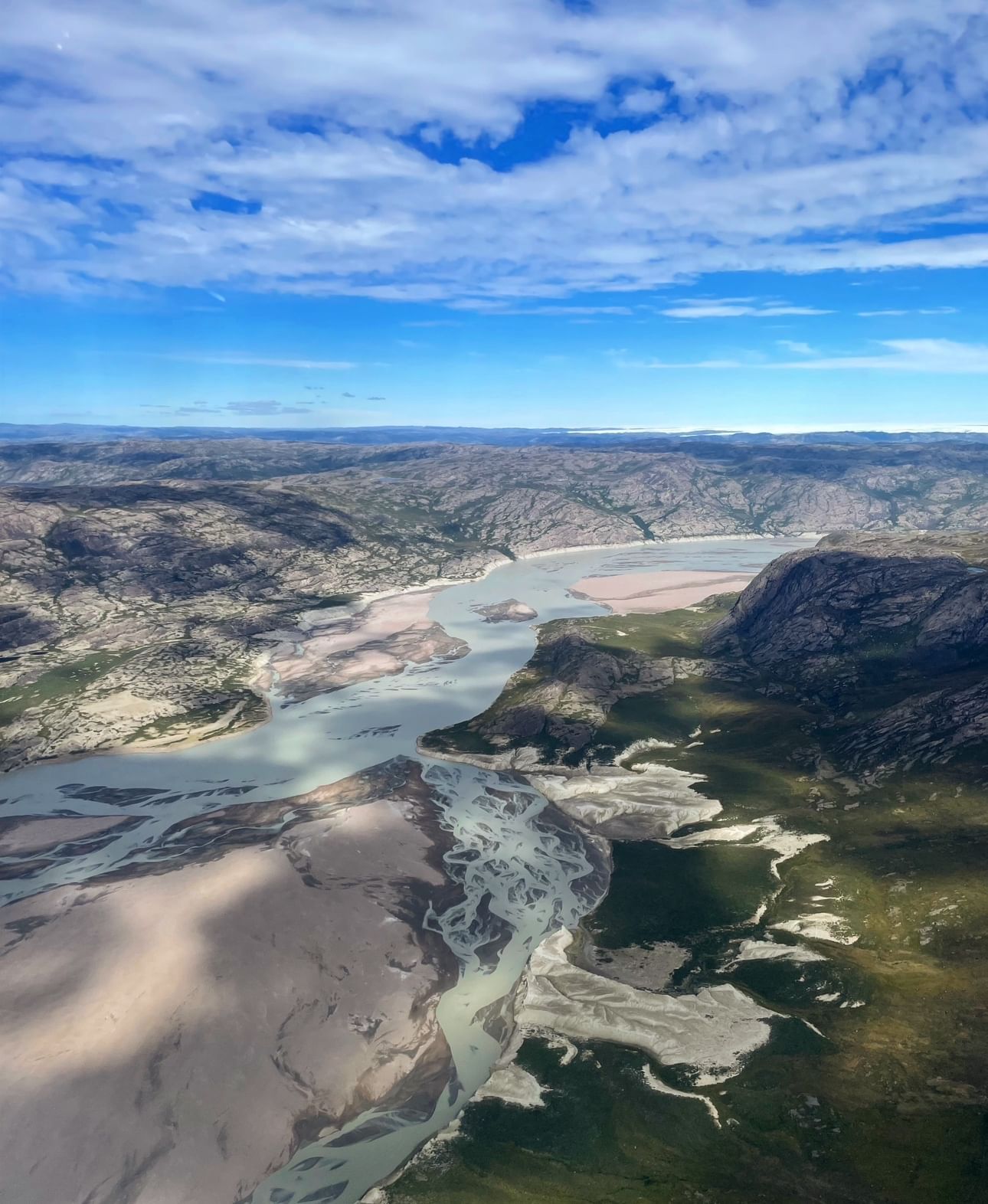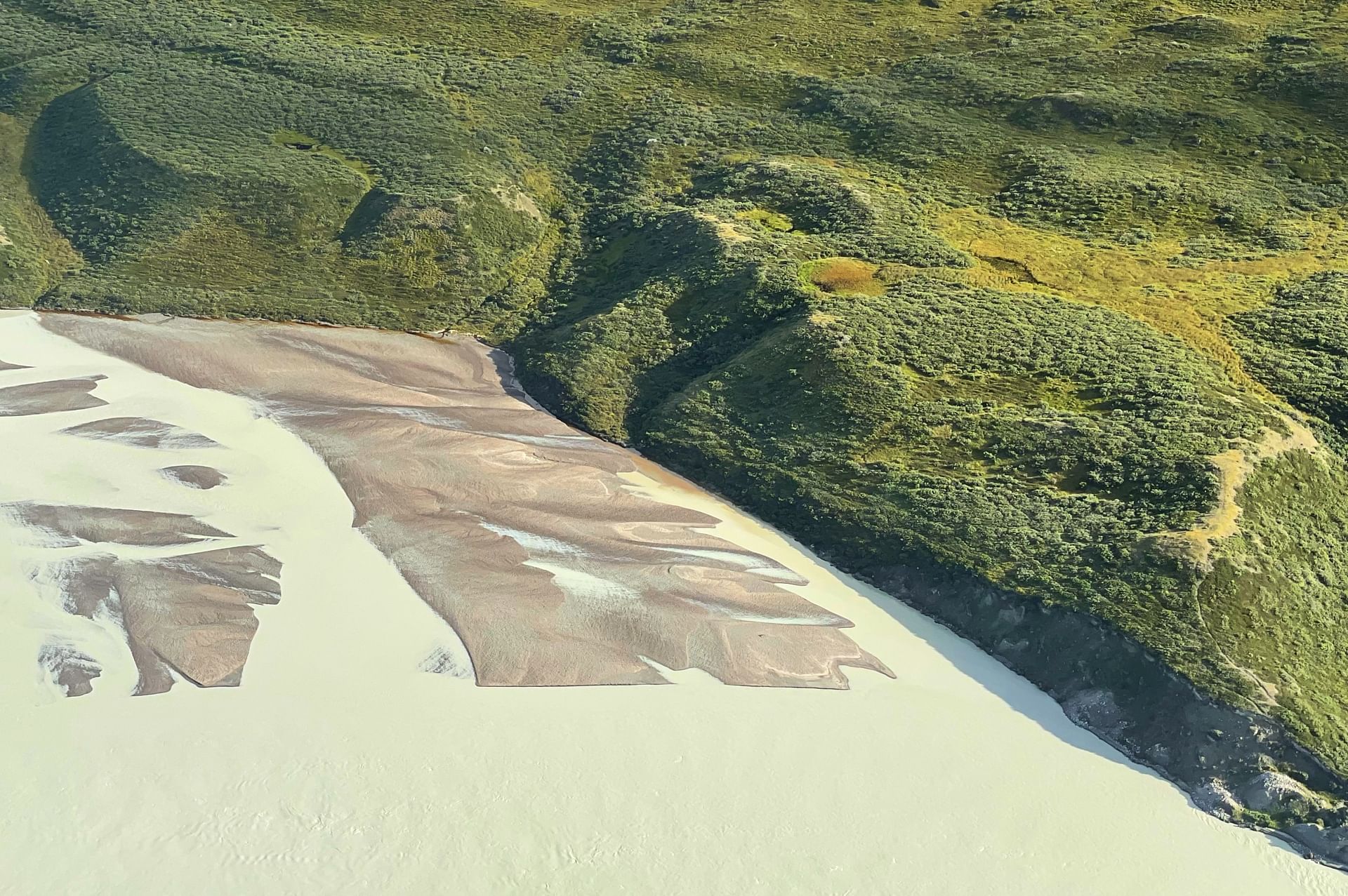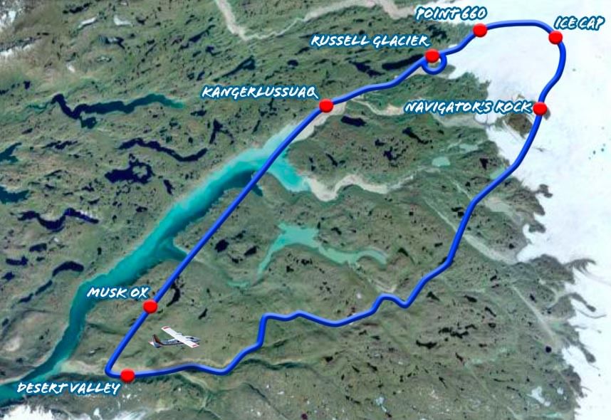 A great part of the valley is a protected nature reserve, and you will understand why when you see it. The tour starts out towards the ice cap and the Russell’s Glacier. After having explored the inland ice, we head Southeast towards the Paradise Valley, traveling over areas with very dense musk ox habitation. We will then fly into the Paradise Valley following it out to the long fjord which will also lead us back to Kangerlussuaq. Just before landing we will see the meeting of the freshwater and saltwater. A unique and beautiful wall between the two waters best spotted from above.